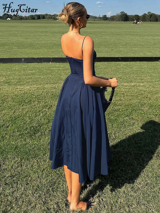 Elegant Pleated Mini Dress for Women – 2025 Square Neck Backless Sleeveless Slim Fit Party Dress in Solid Color