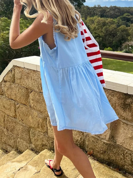 Summer Dress Vibes Sleeveless Mini With Open Back for Beach Outfits Aesthetic