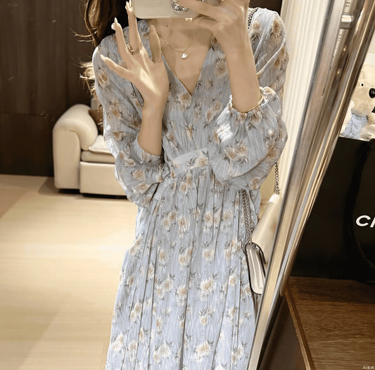 V-Neck Summer Dress Style Featuring Flower Prints And Flowy Ruffle Design