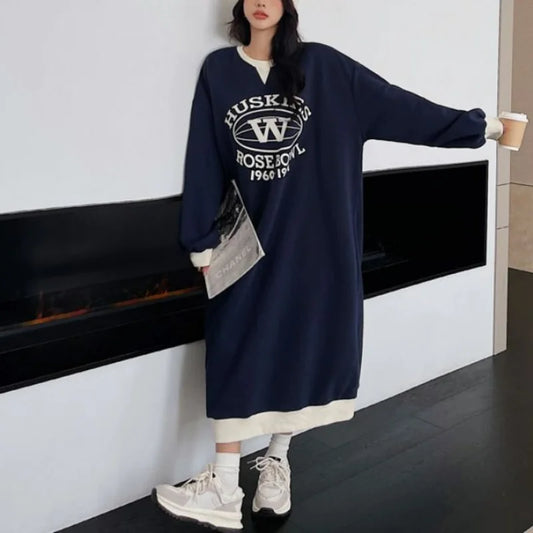 Fall Outfit Idea With Fleece Long Dress And Casual Print For Cozy Looks