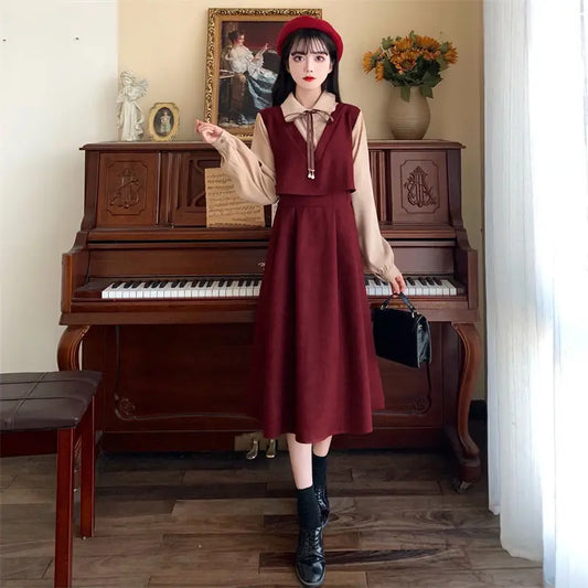 Preppy Style Dress For Spring Fashion Featuring Patchwork And Elegant Vibes