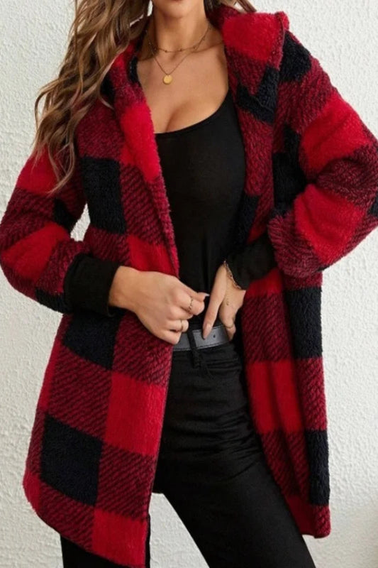 Soft Plush Outerwear With Long Sleeves And Plaid Style For Winter Fall Fashion