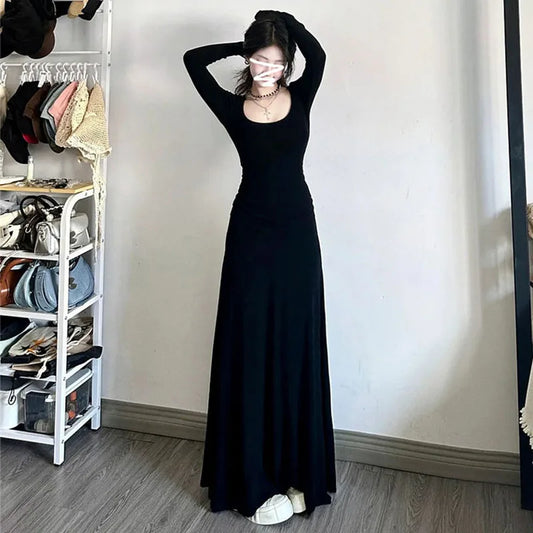 Long Sleeve Dress For Spring Outfit Ideas With Slim Silhouette And Korean Fashion Feel