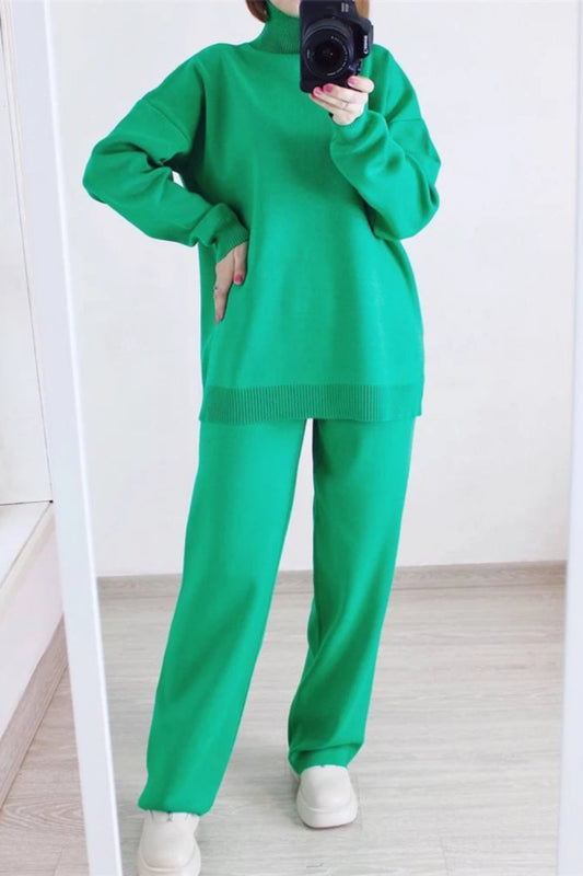 Fall Outfits Casual Knitted 2 Piece Outfit For Women Warm Turtleneck Sweater And Pants Set