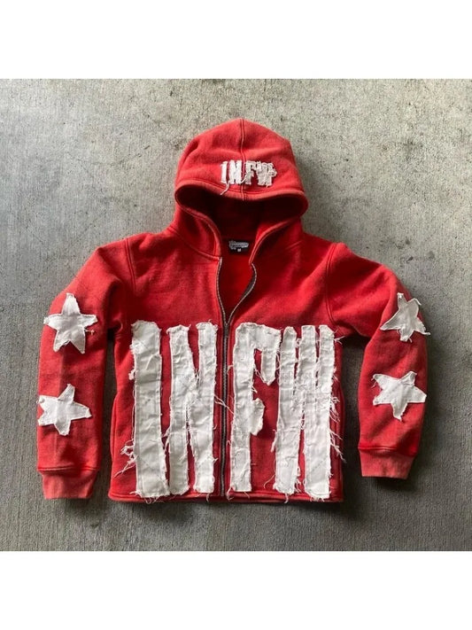 2025 Fall Outfit Y2K Harajuku Vintage Star Patchwork Hoodie Women Oversized Gothic Grunge Streetwear