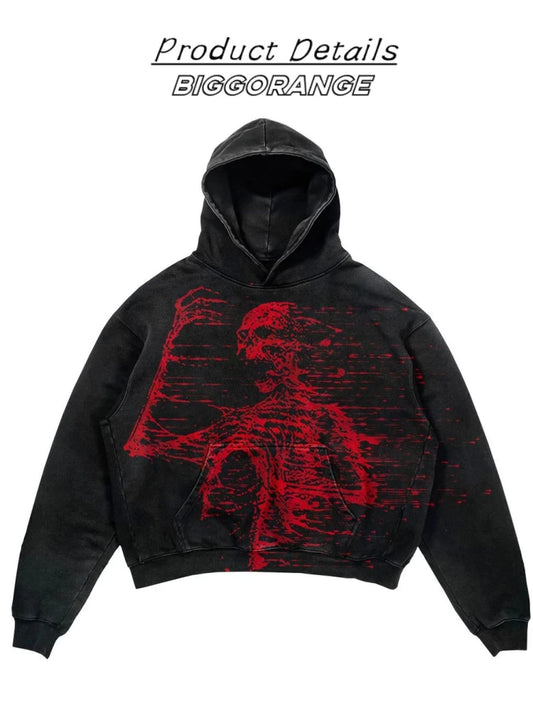 2025 Fall Outfits Harajuku Noir Retro Zip-Up Printed Hoodie