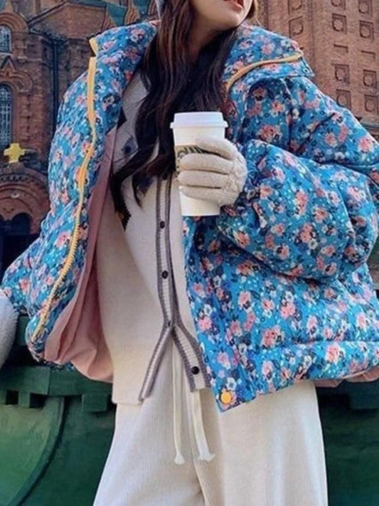 Warm Blossom Puff Jacket Floral Elegance for Winter