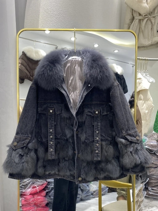 Women's Outerwear Luxe Fox Fur Denim Parka