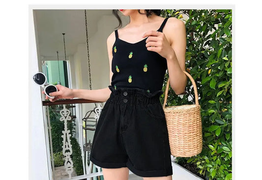 Vintage Cottagecore Summer 2025 Floral Embroidered Two Piece Set with Sleeveless Buttoned Vest and High Waist Soft Shorts