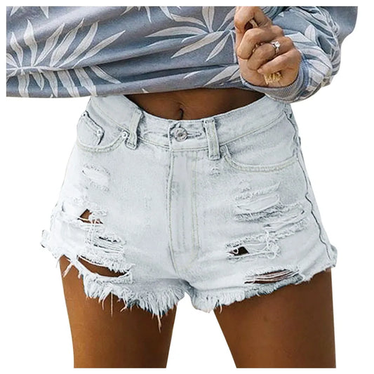 Women's Ripped Denim Shorts – Stretchy, Stylish, Summer-Ready