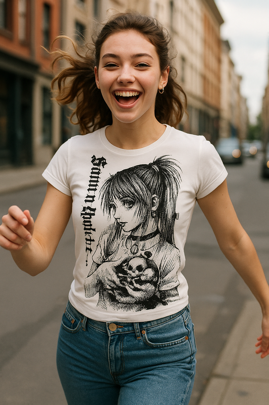 Retrocore O-Neck MicroCrop for Alt-Girl Street Vibes Y2k anime Streetwear Tops T-shirt