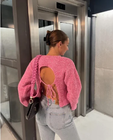 Back Cut Out Chic Crop Pullover