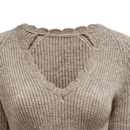 V Neck Lace Up Sweater