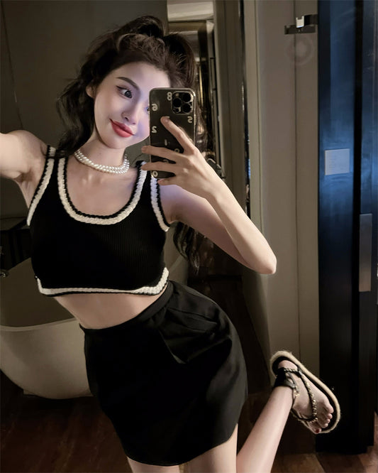 Floral Two Piece Outfit With Halter Crop Top And Lace Hem Skirt For Summer Outfits Fashion
