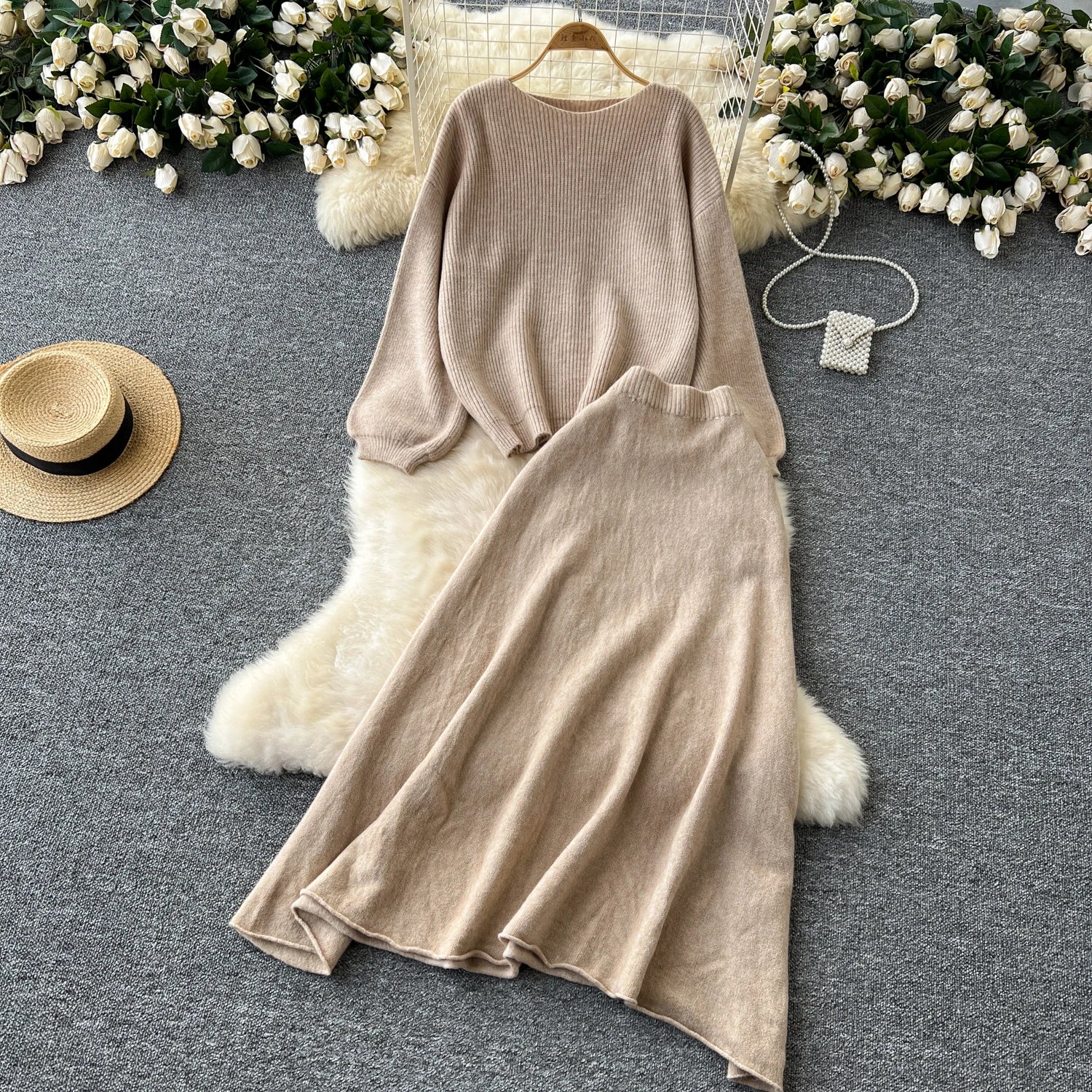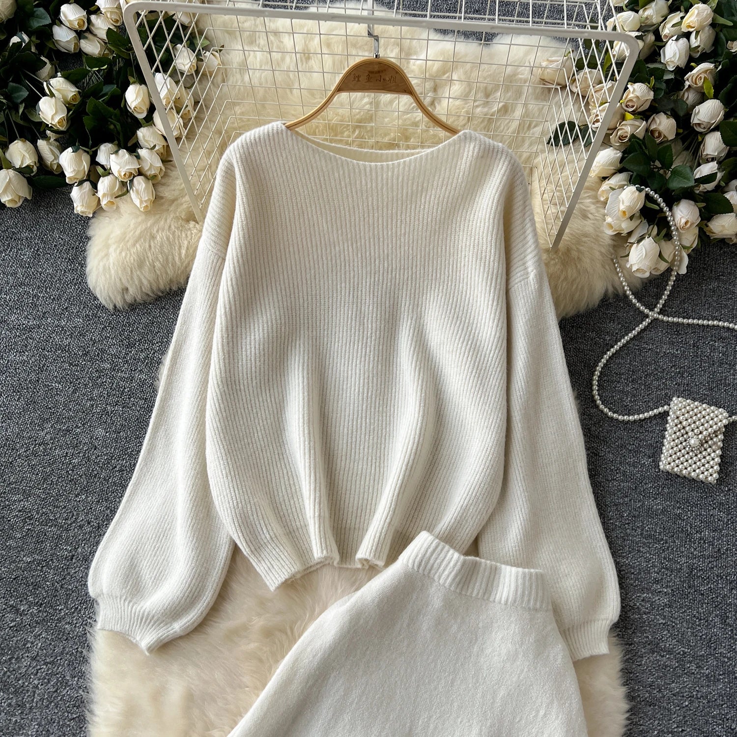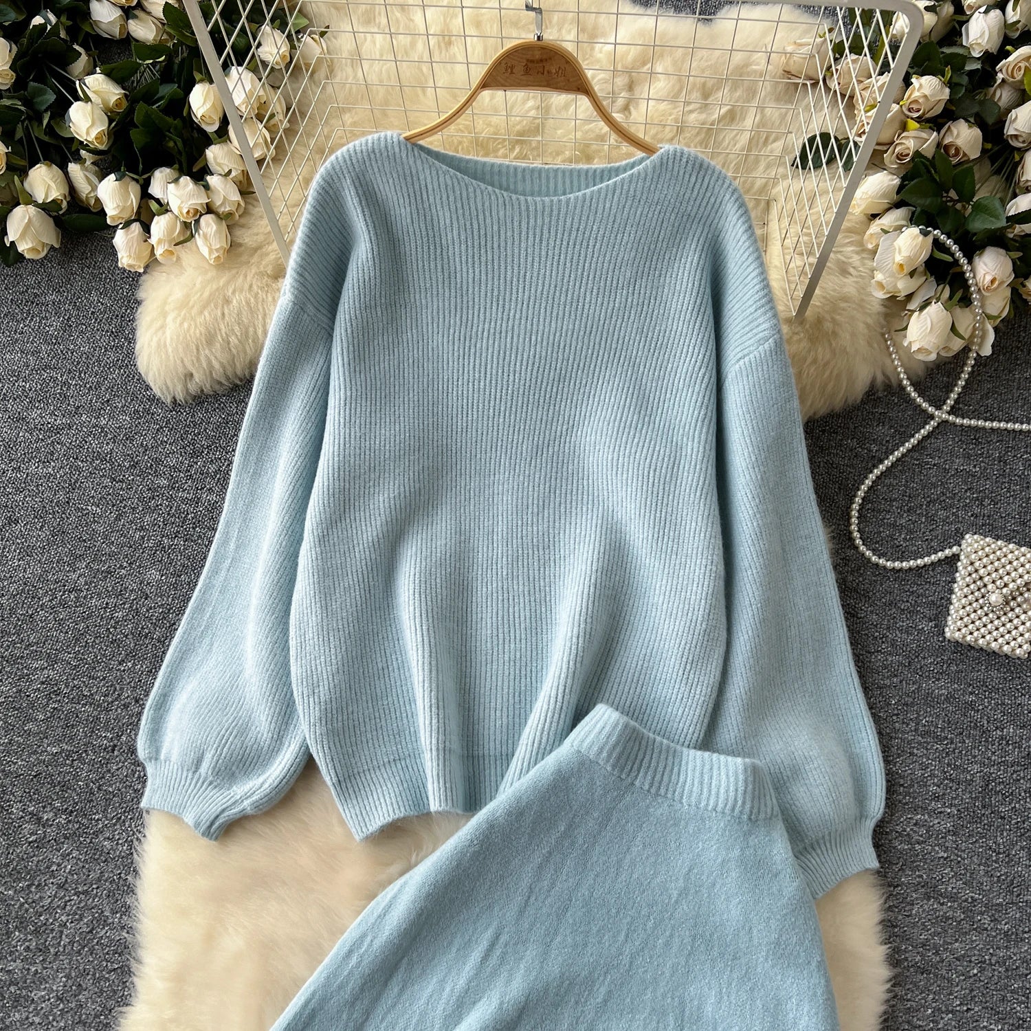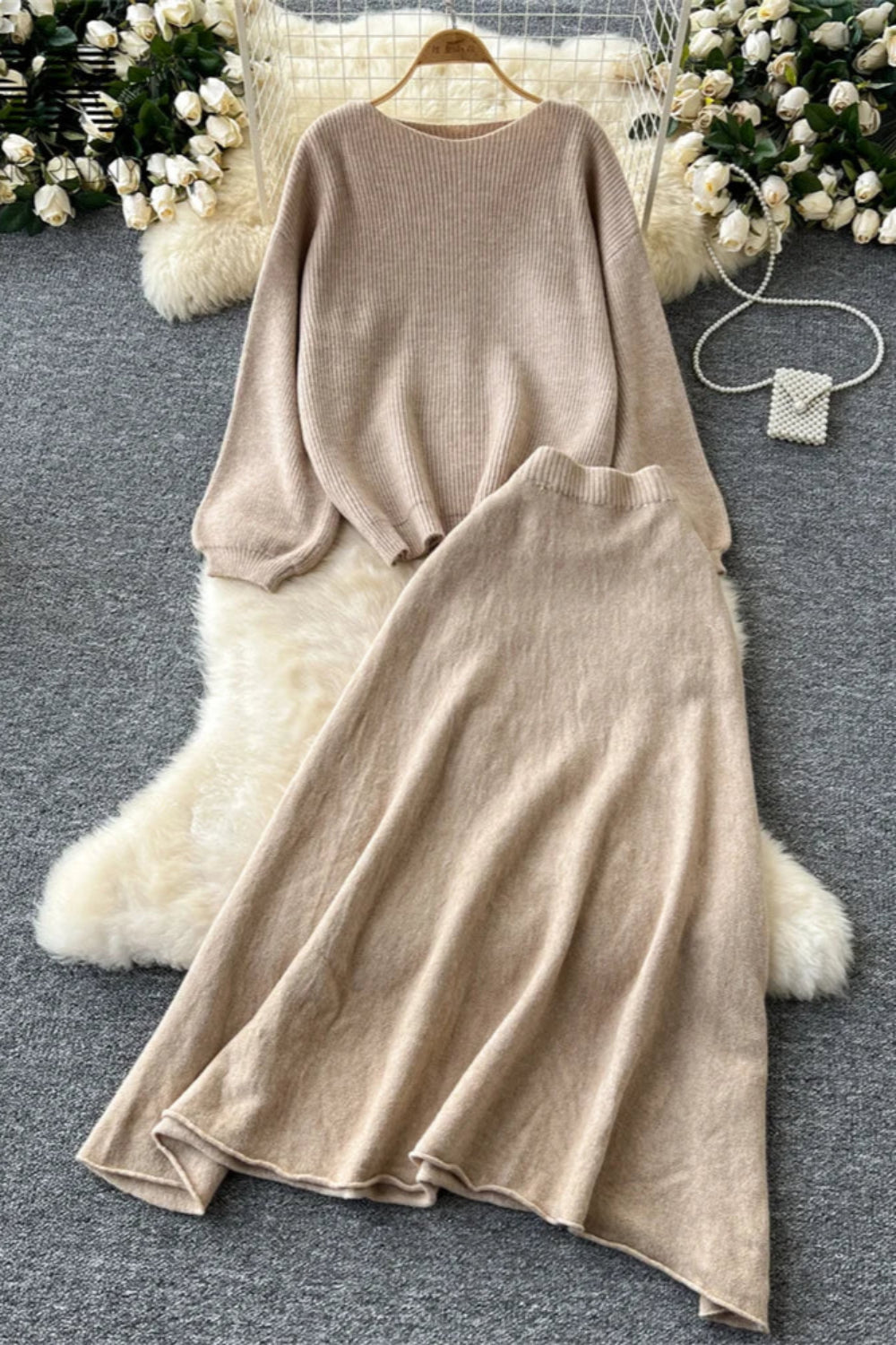Fall Outfit Aesthetic Knit Sweater And Skirt Coord Set