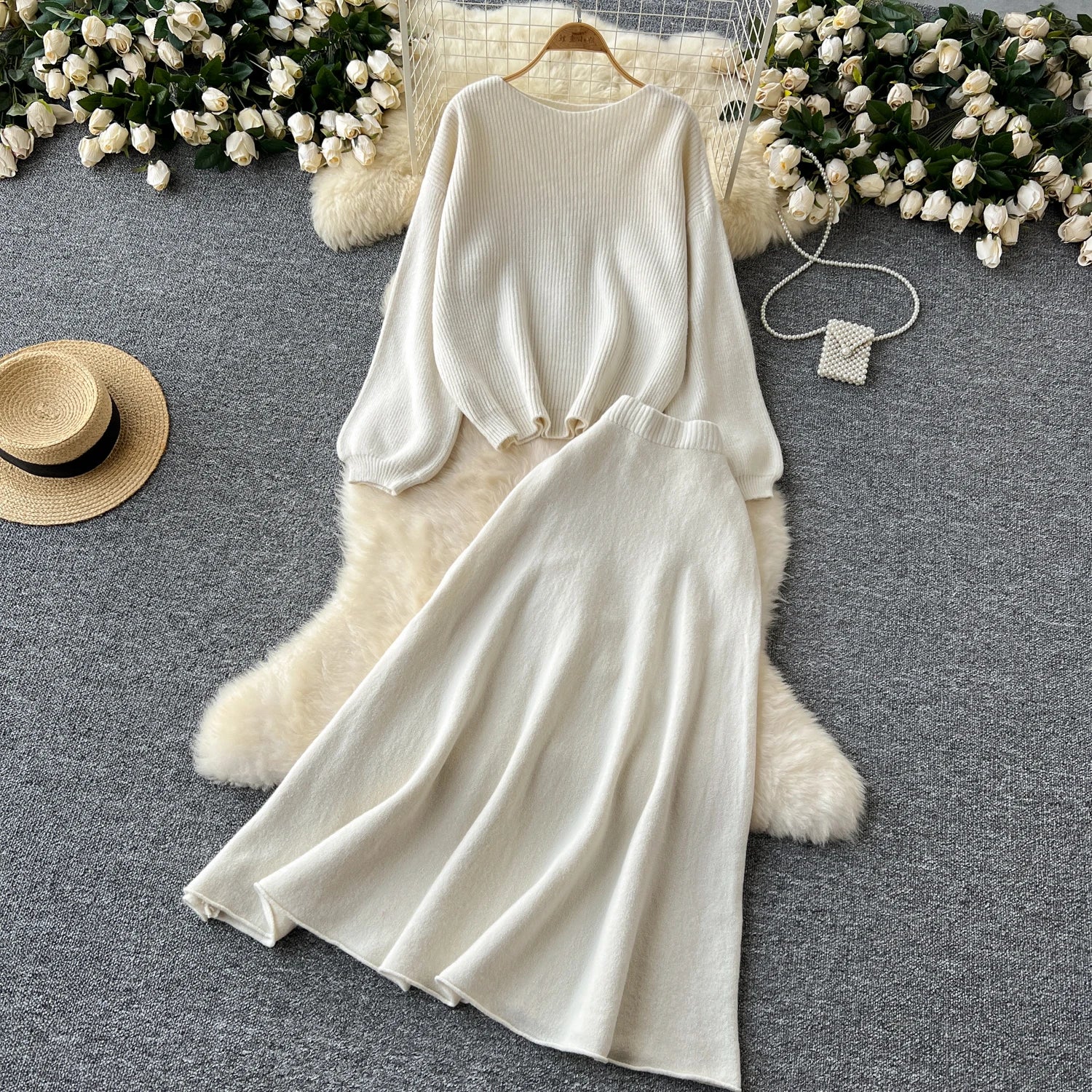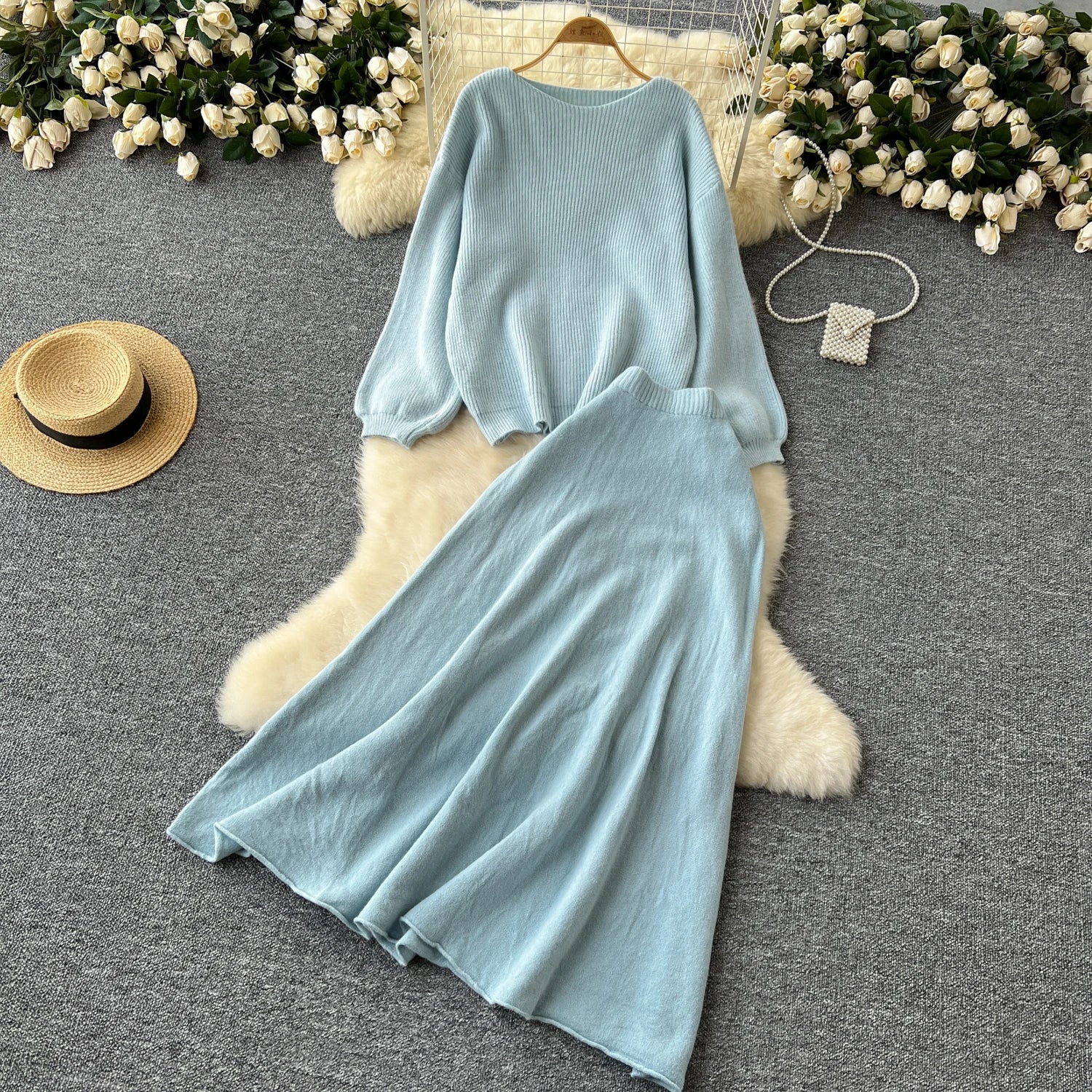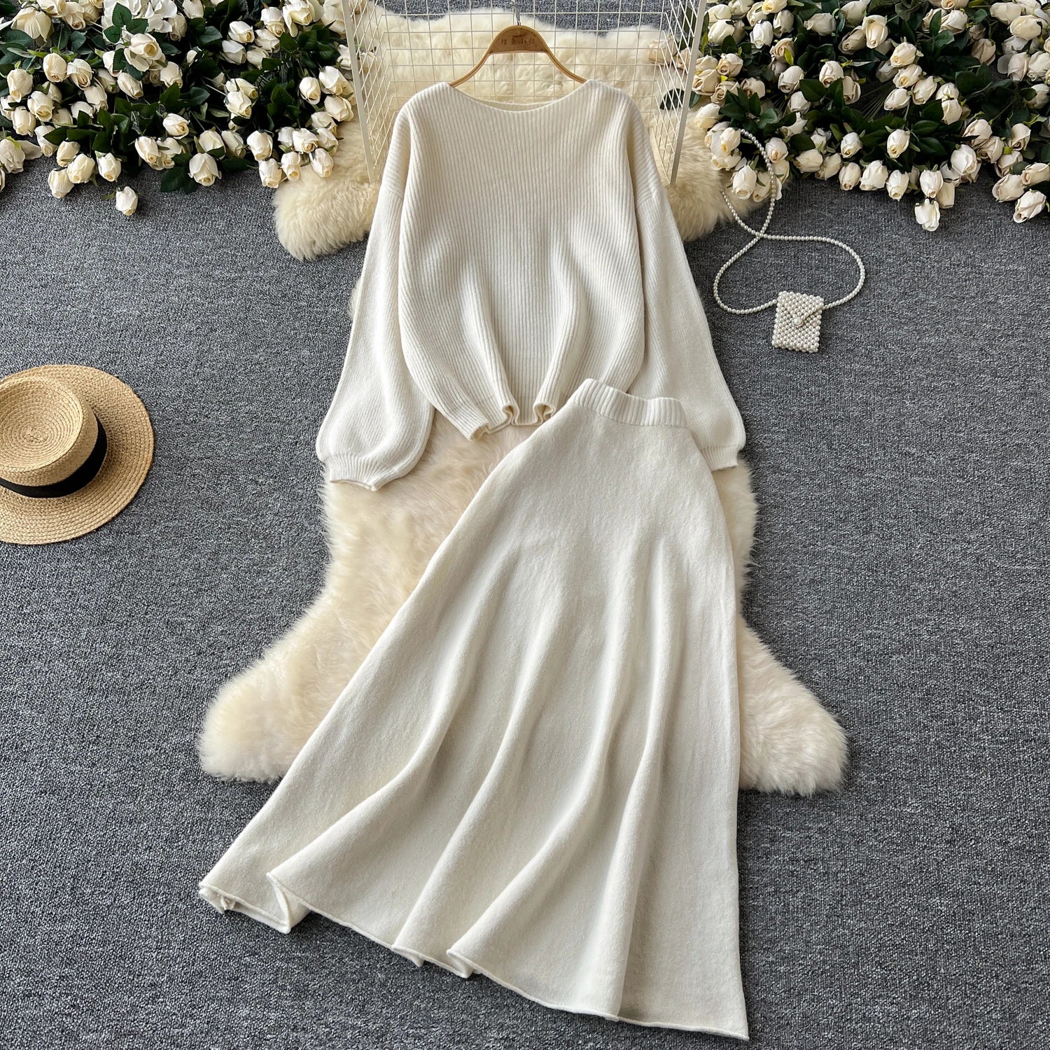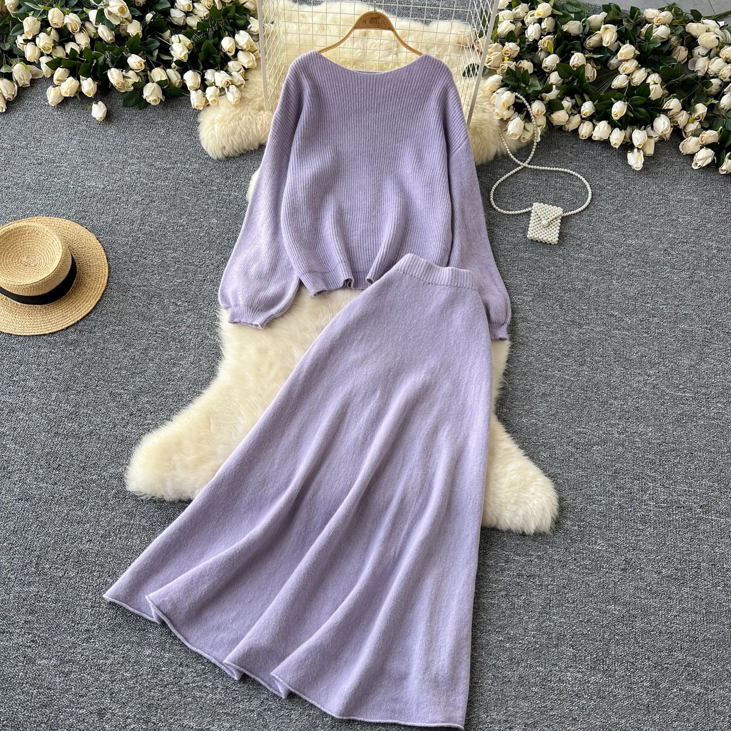 Fall Outfit Aesthetic Knit Sweater And Skirt Coord Set