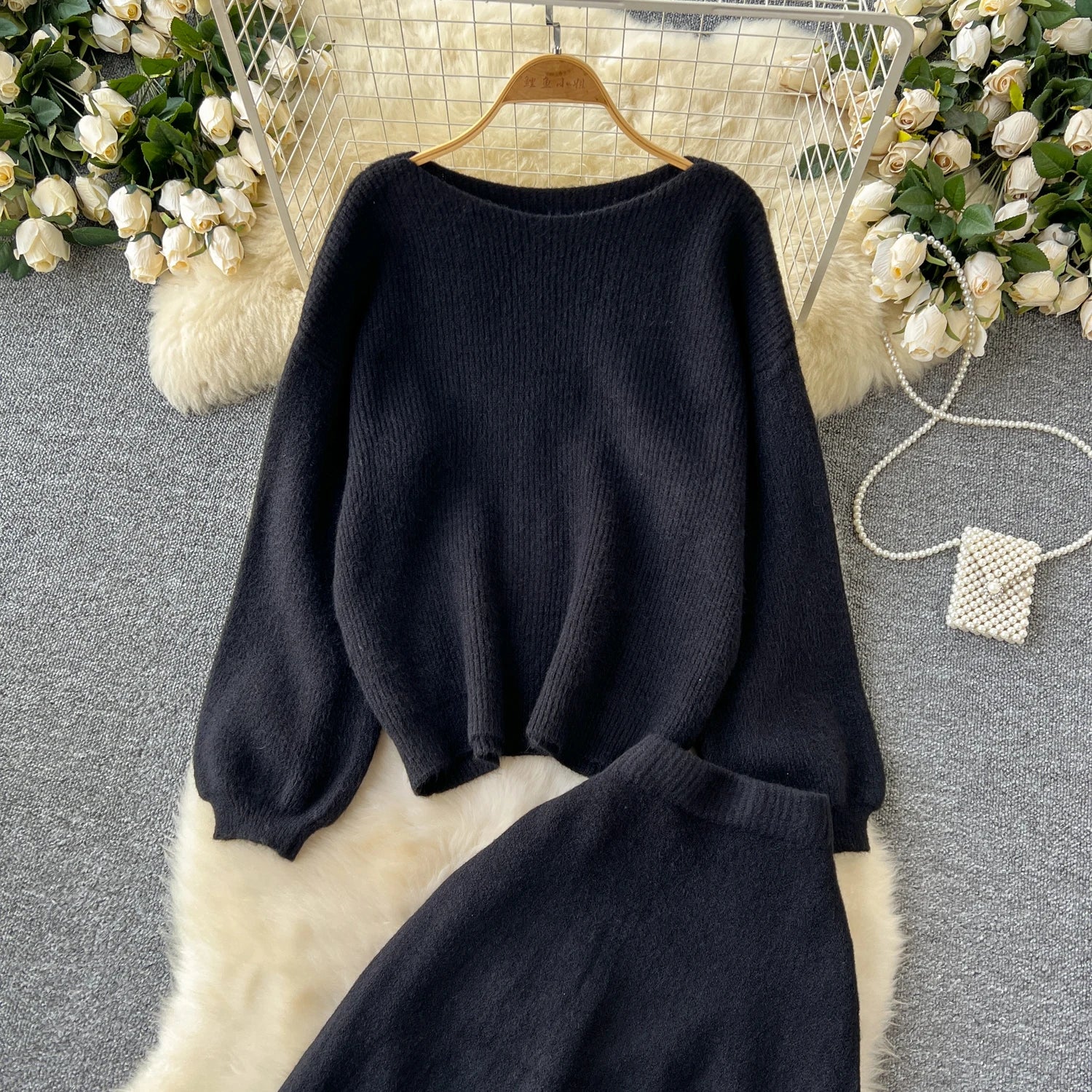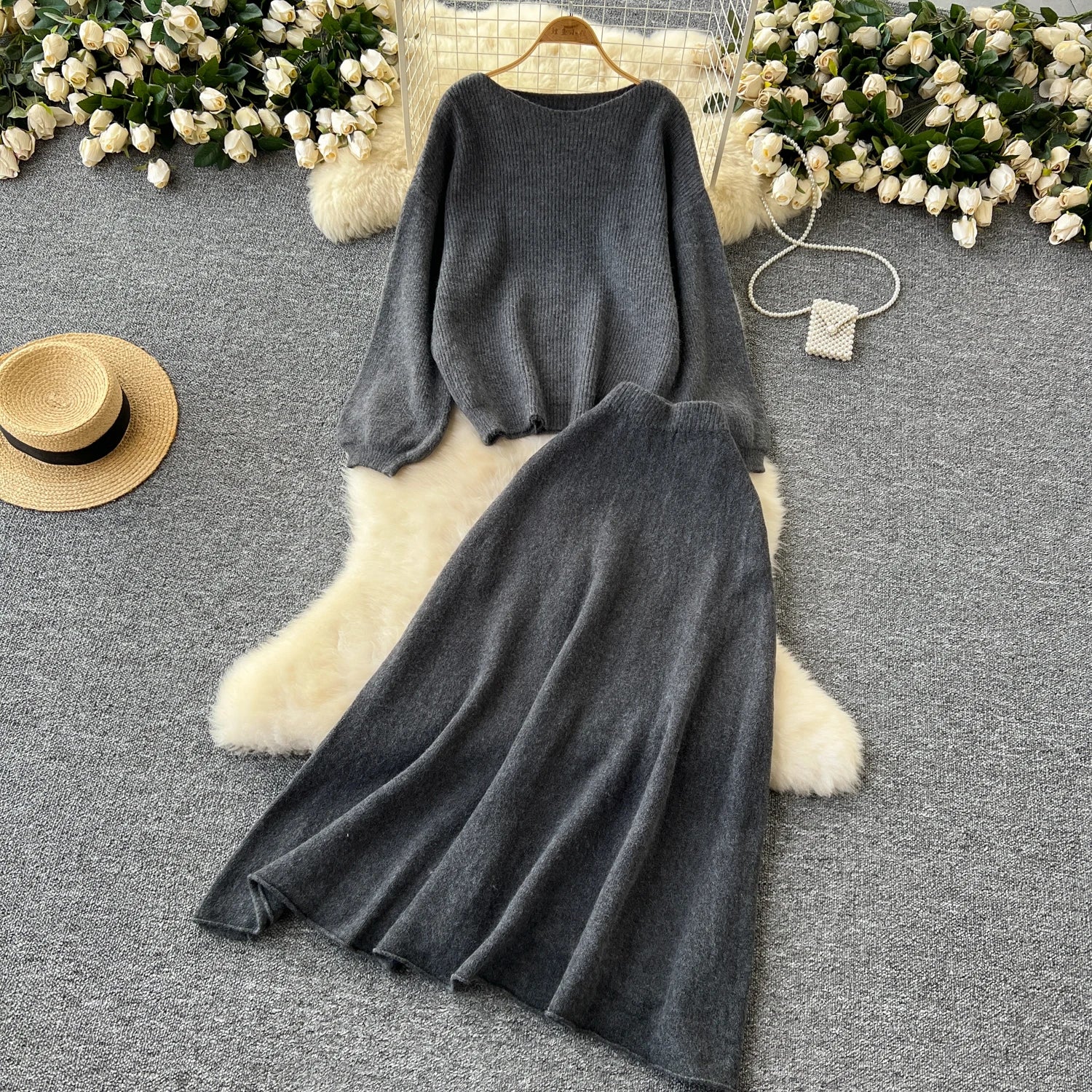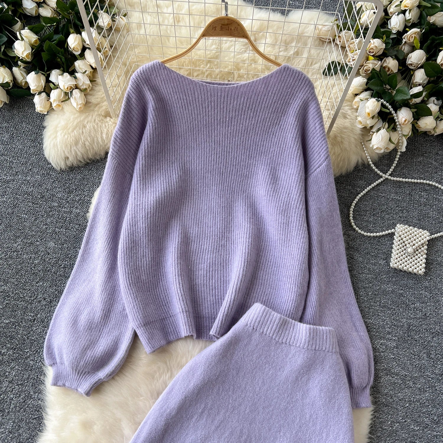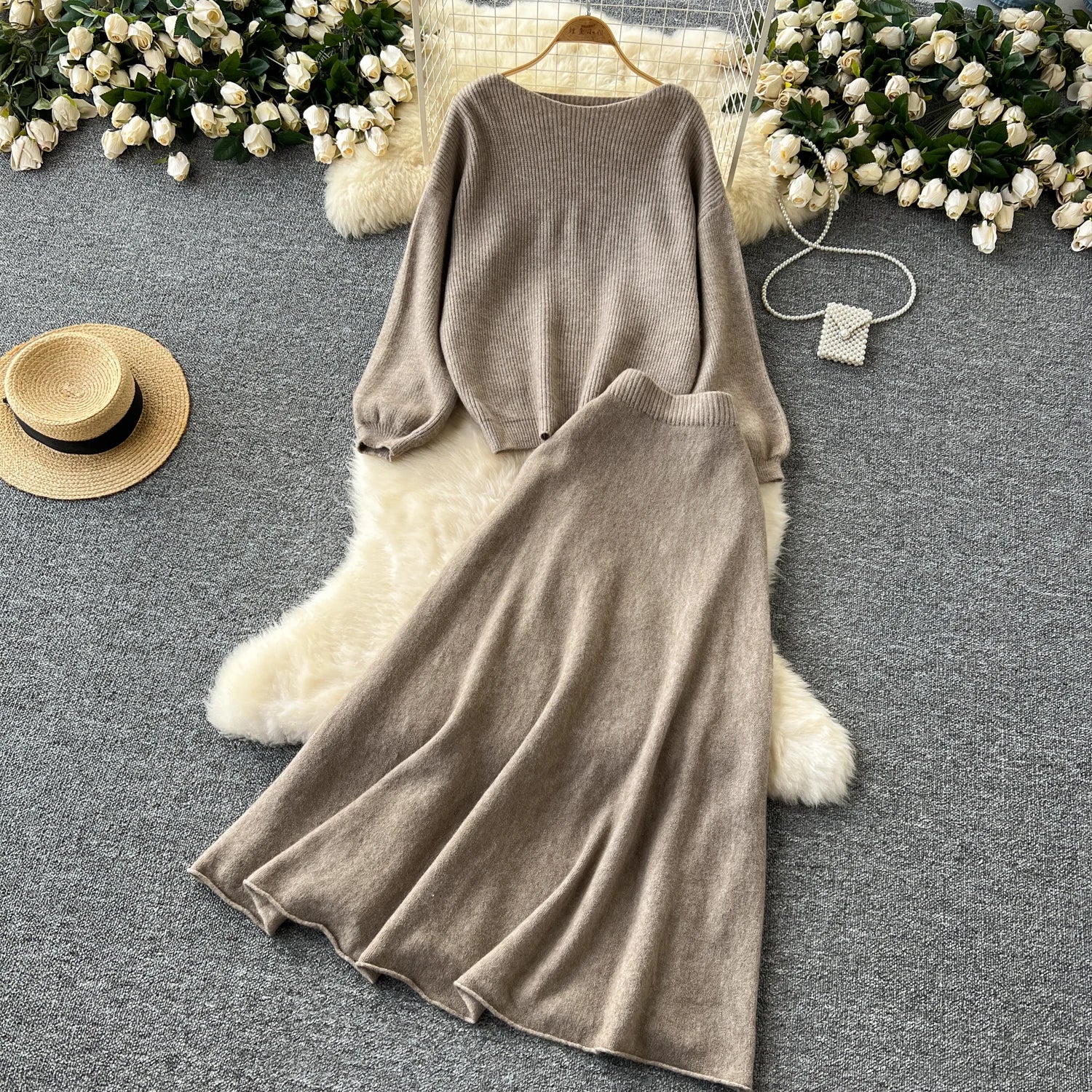 Fall Outfit Aesthetic Knit Sweater And Skirt Coord Set
